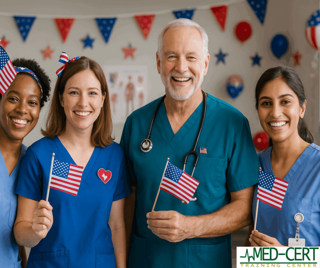 Their efforts don’t just save lives—they help sustain the strength, resilience, and liberty of our nation.In this special Independence Day feature, we’ll explore the essential connection between healthcare and national independence, spotlight the unsung heroes in scrubs, and show how you can join the frontlines of American care through flexible, affordable training at Med-Cert Training Center.