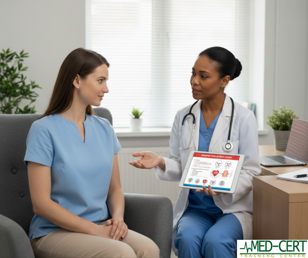 One of the most powerful ways to support heart health is by learning CPR. Immediate CPR can double or even triple a cardiac arrest victim’s chance of survival. At Med-Cert Training Center, we emphasize the importance of CPR and basic life support training as part of our healthcare education programs.